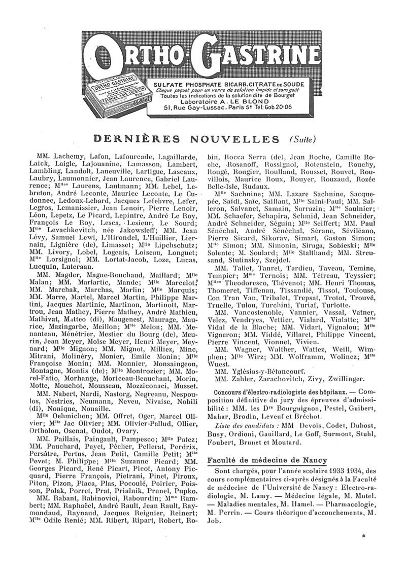 1933, n° 90, partie paramédicale. -