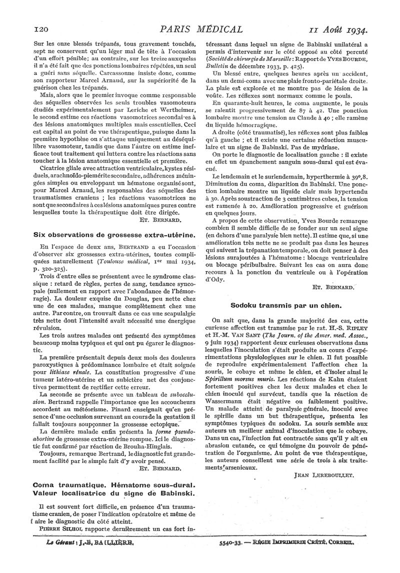 1934, n° 93, partie médicale. -