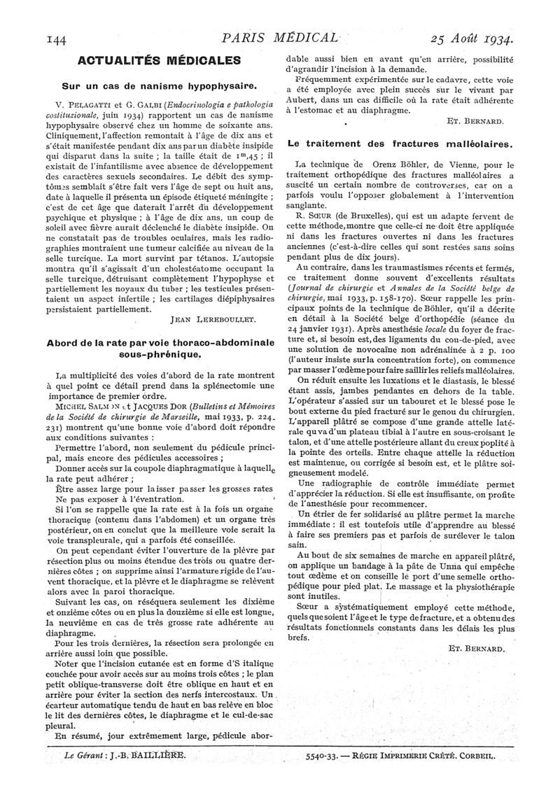 1934, n° 93, partie médicale. -
