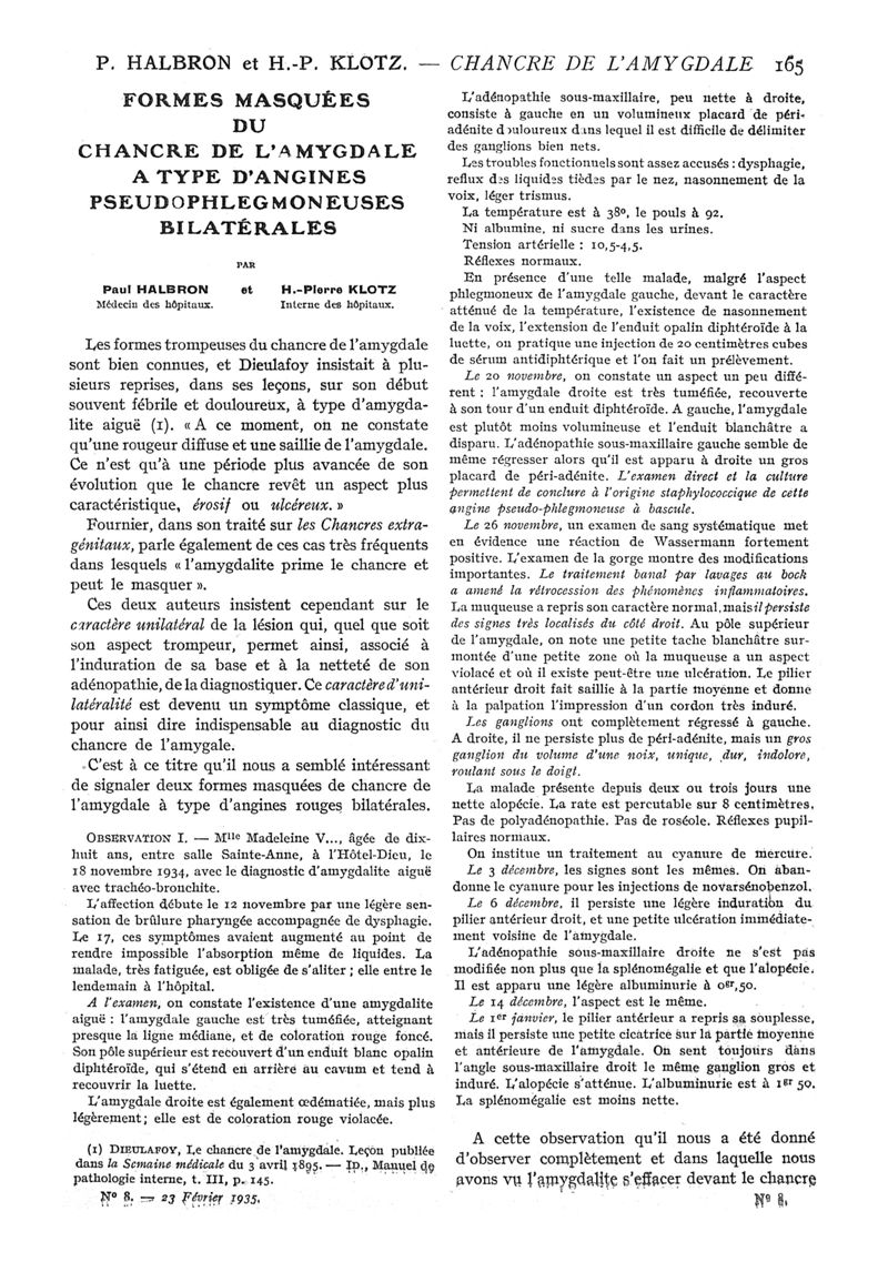 1935, n° 95, partie médicale. -