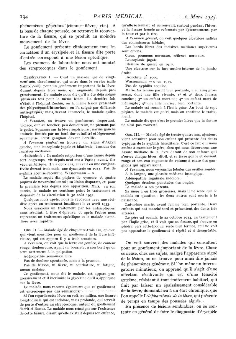 1935, n° 95, partie médicale. -