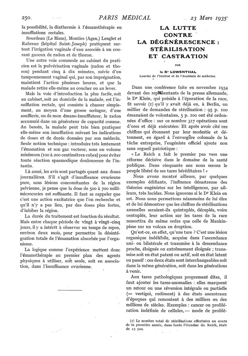 1935, n° 95, partie médicale. -