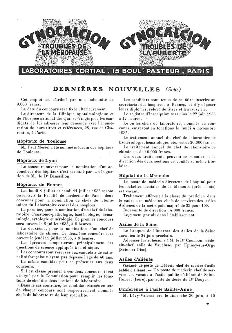 1935, n° 96, partie paramédicale. -