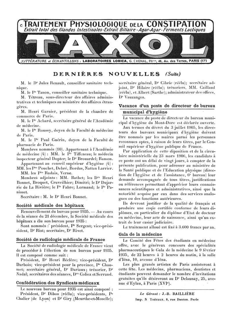 1935, n° 96, partie paramédicale. -
