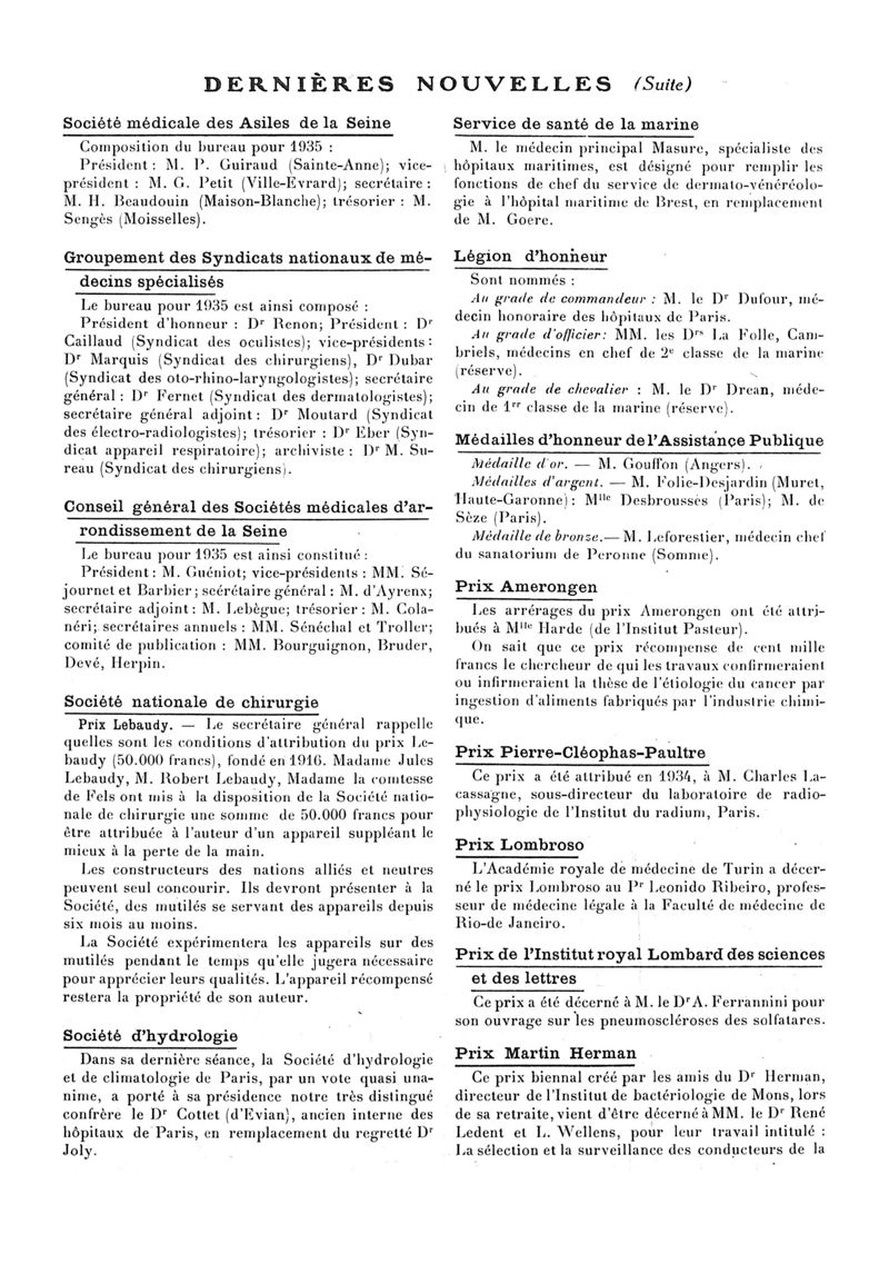 1935, n° 96, partie paramédicale. -