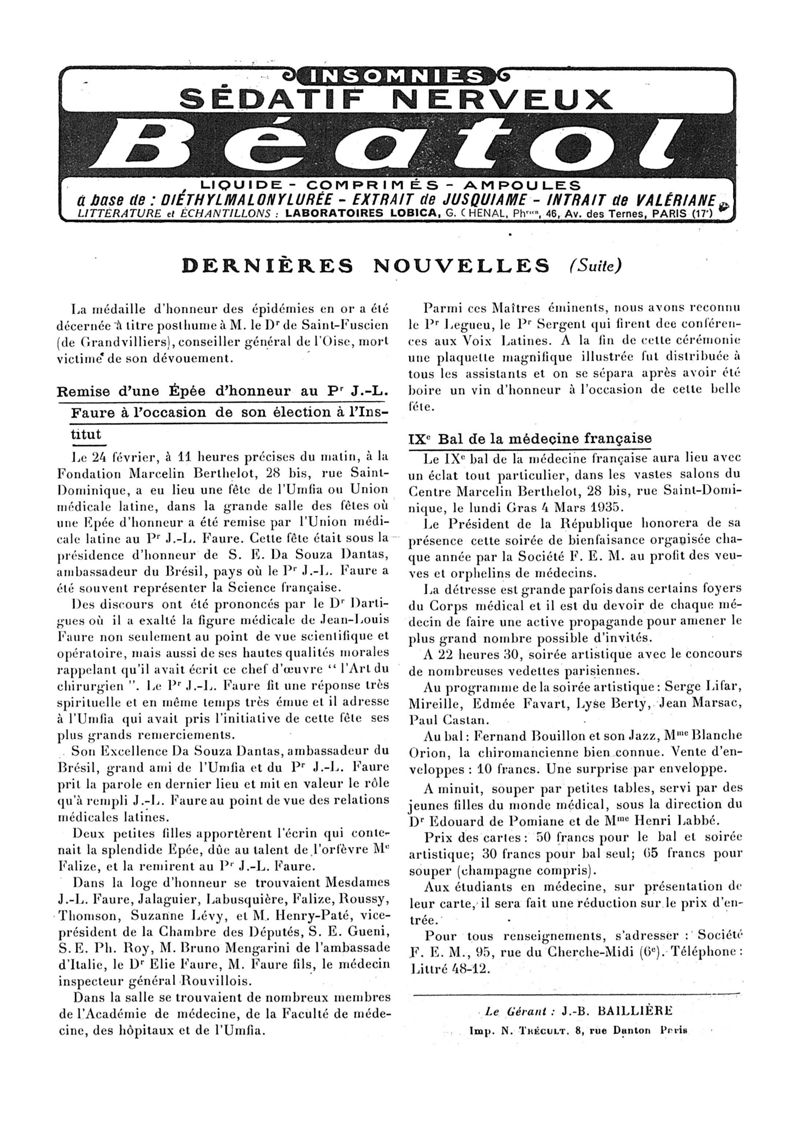1935, n° 96, partie paramédicale. -