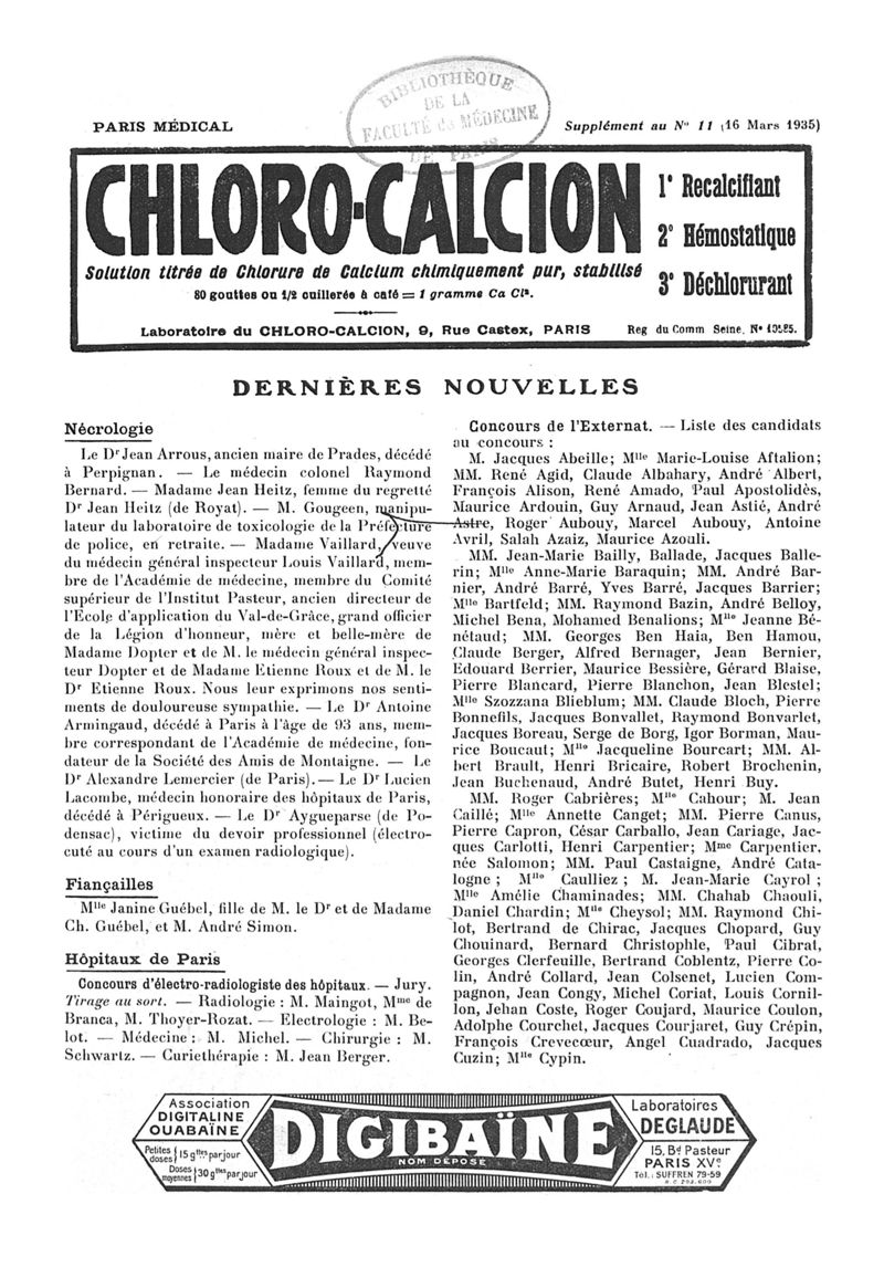 1935, n° 96, partie paramédicale. -