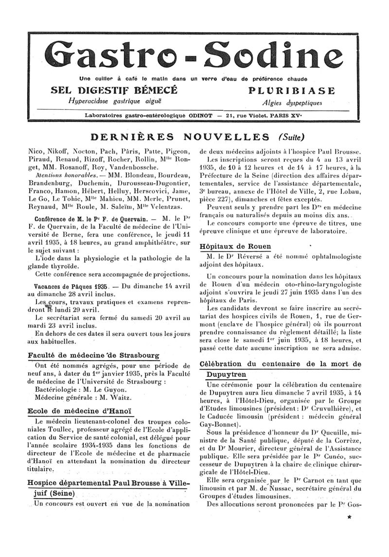 1935, n° 96, partie paramédicale. -