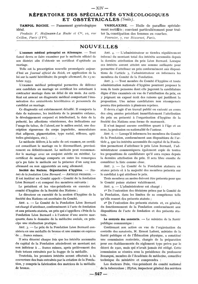 1935, n° 98, partie paramédicale. -