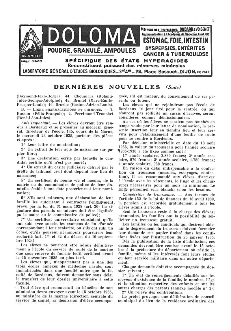 1935, n° 98, partie paramédicale. -