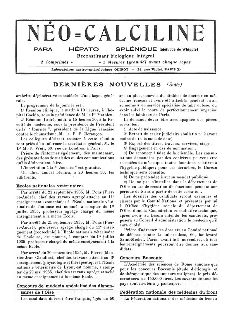 1935, n° 98, partie paramédicale. -