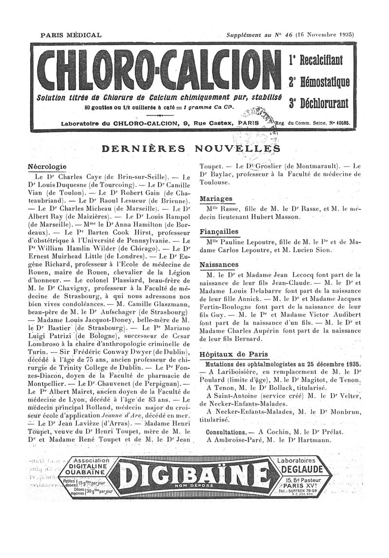 1935, n° 98, partie paramédicale. -
