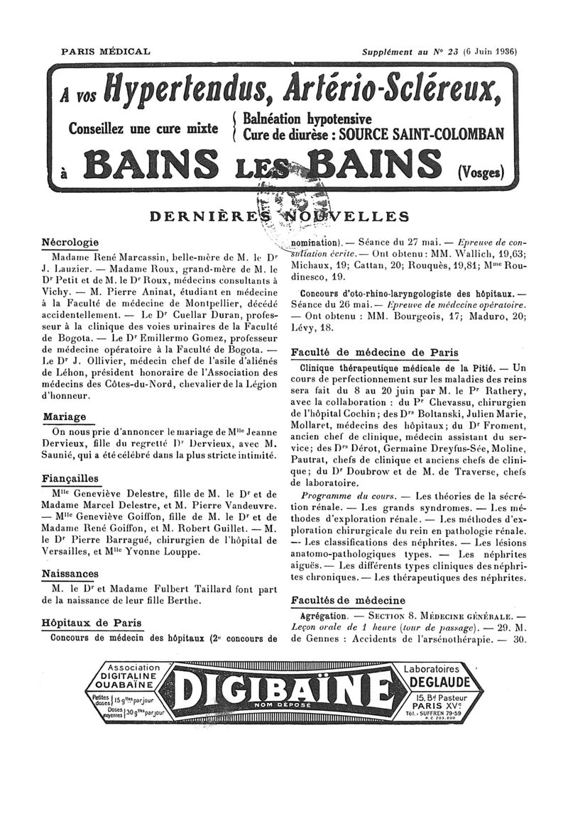 1936, n° 100, partie paramédicale. -
