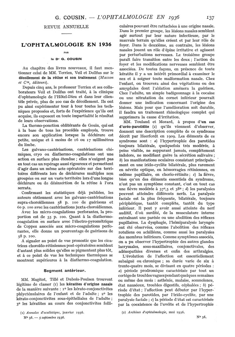 1936, n° 101, partie médicale. -