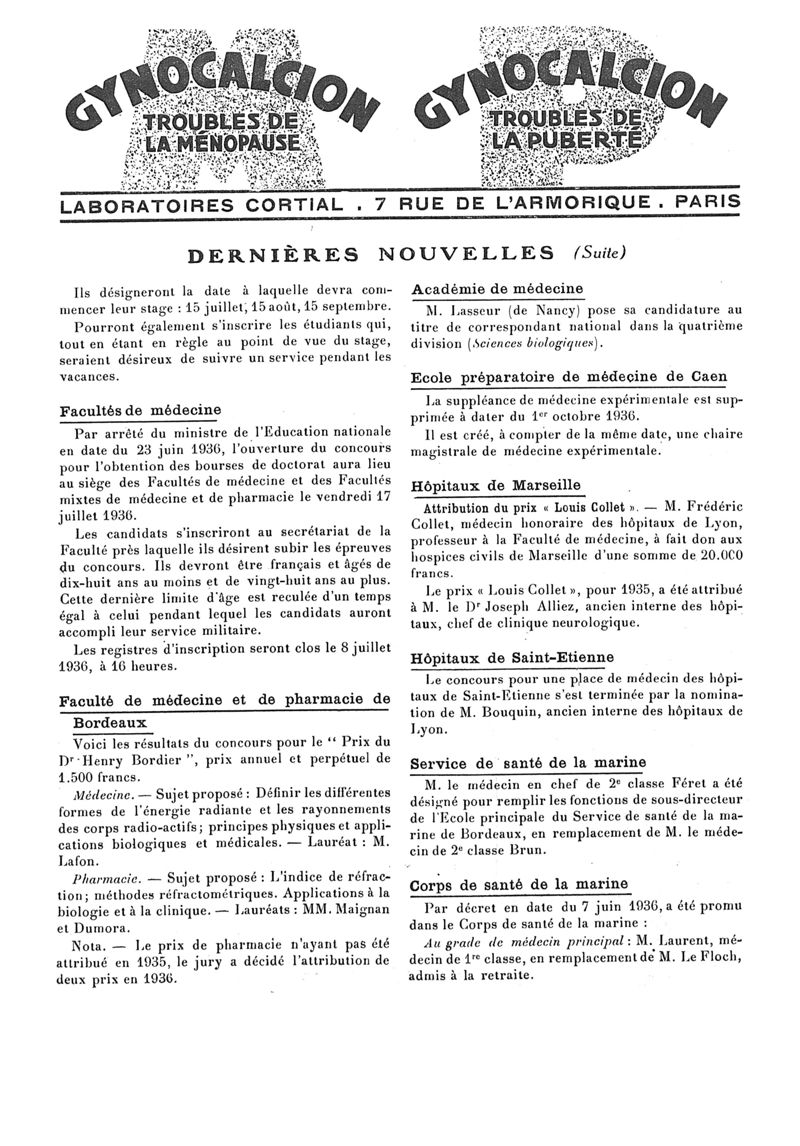 1936, n° 102, partie paramédicale. -