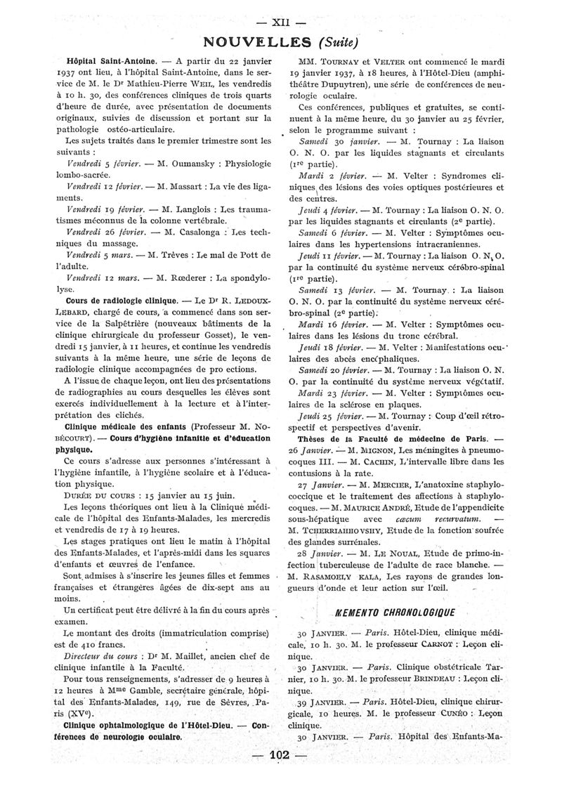1937, n° 104, partie paramédicale. -