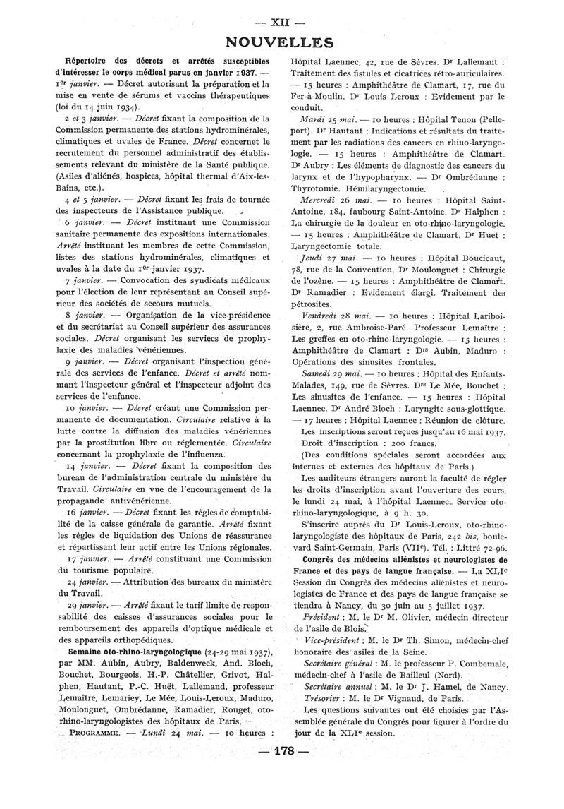 1937, n° 104, partie paramédicale. -