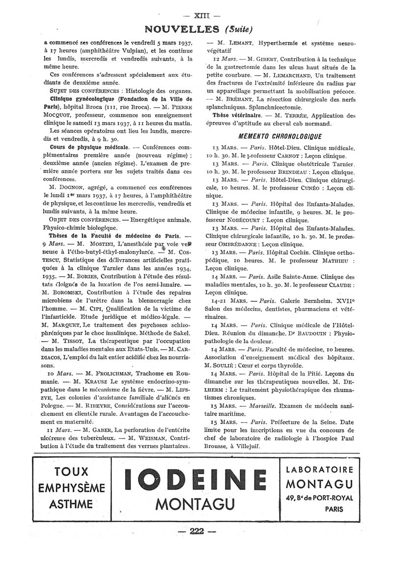 1937, n° 104, partie paramédicale. -