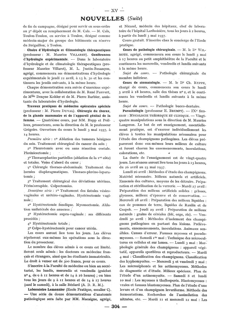 1937, n° 104, partie paramédicale. -
