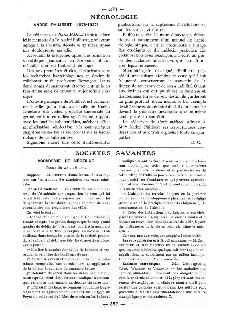 1937, n° 104, partie paramédicale. -