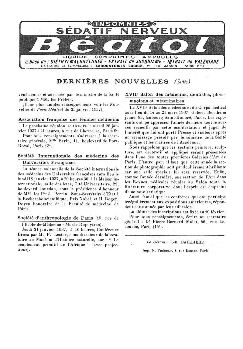 1937, n° 104, partie paramédicale. -