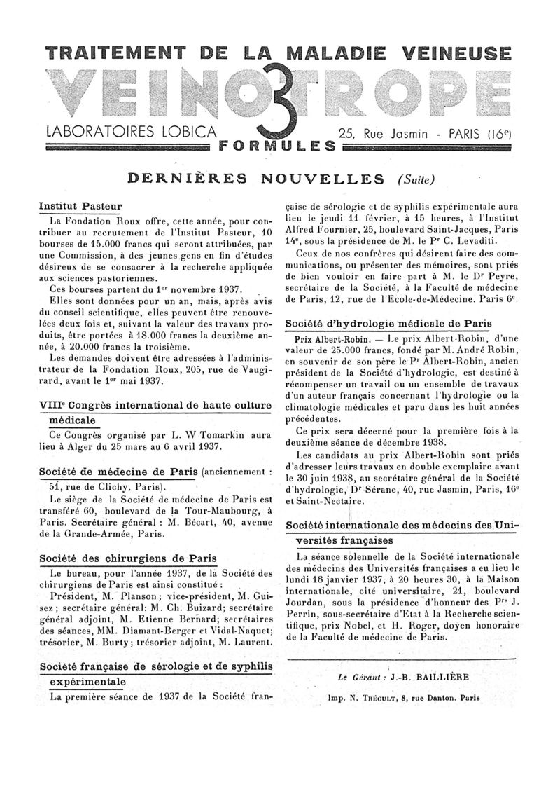 1937, n° 104, partie paramédicale. -