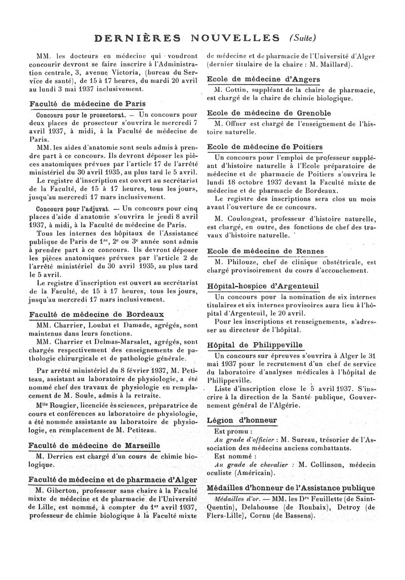 1937, n° 104, partie paramédicale. -