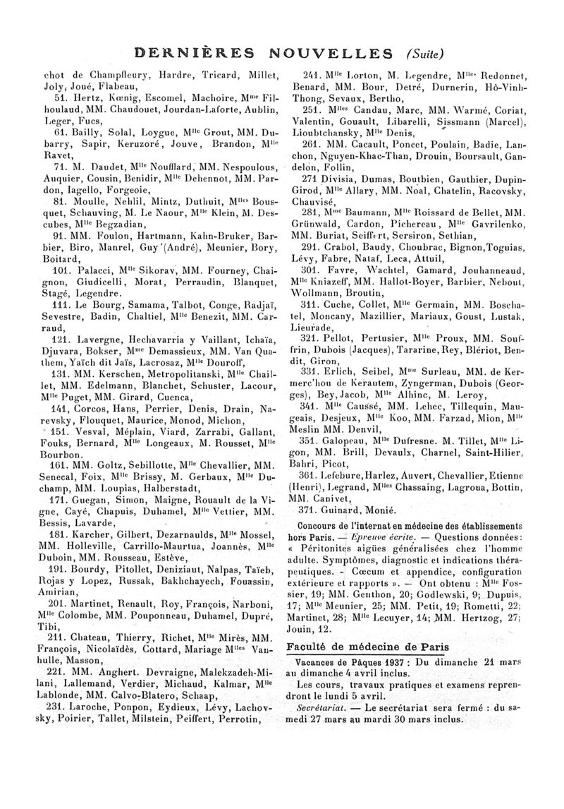 1937, n° 104, partie paramédicale. -