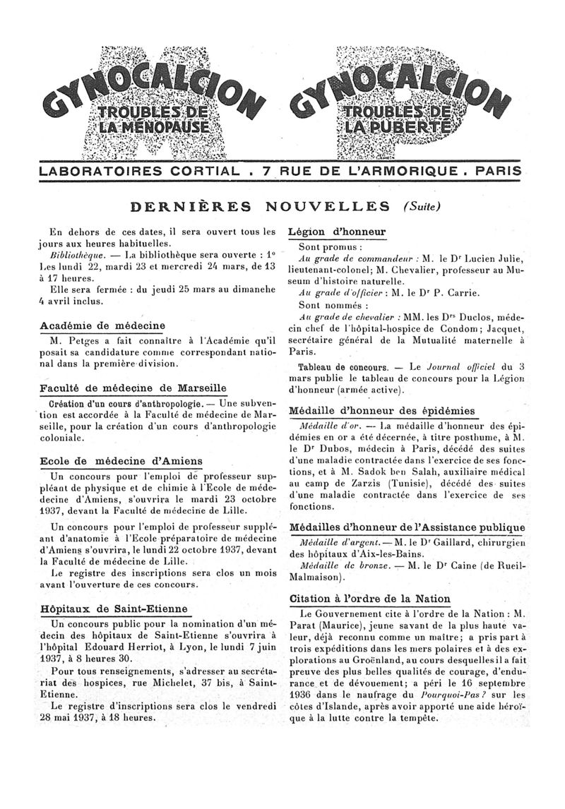 1937, n° 104, partie paramédicale. -