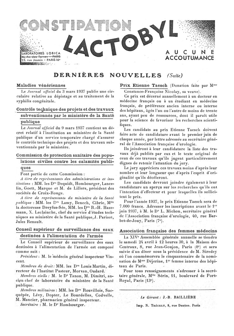 1937, n° 104, partie paramédicale. -