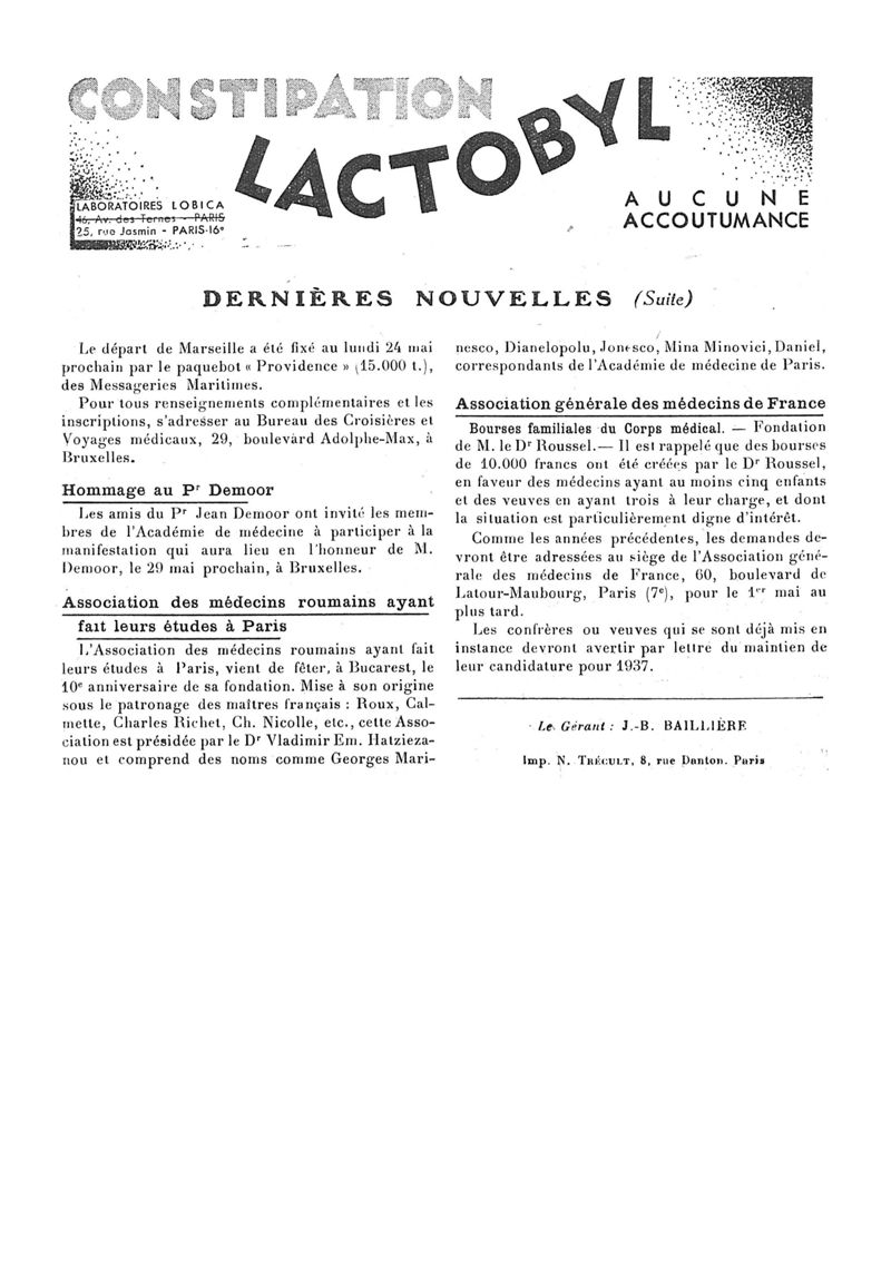 1937, n° 104, partie paramédicale. -