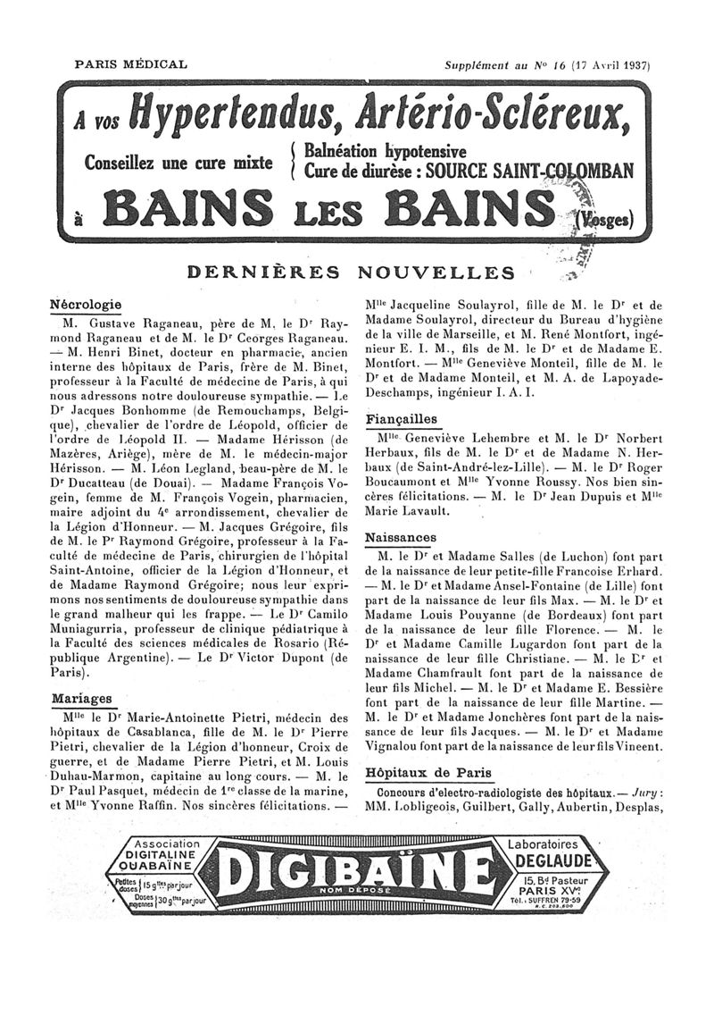 1937, n° 104, partie paramédicale. -