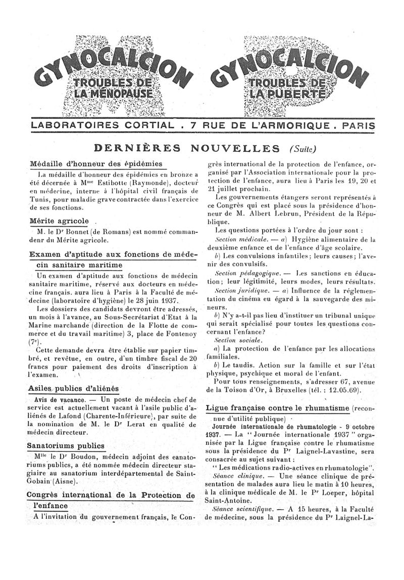 1937, n° 104, partie paramédicale. -