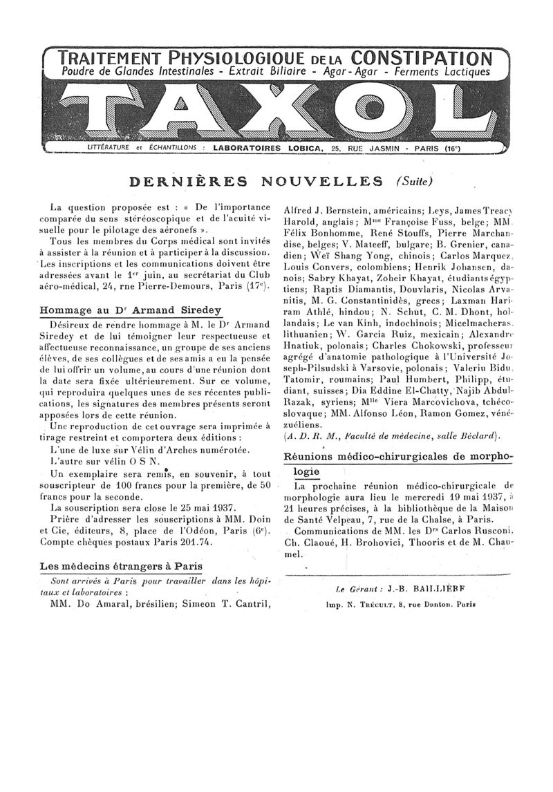 1937, n° 104, partie paramédicale. -
