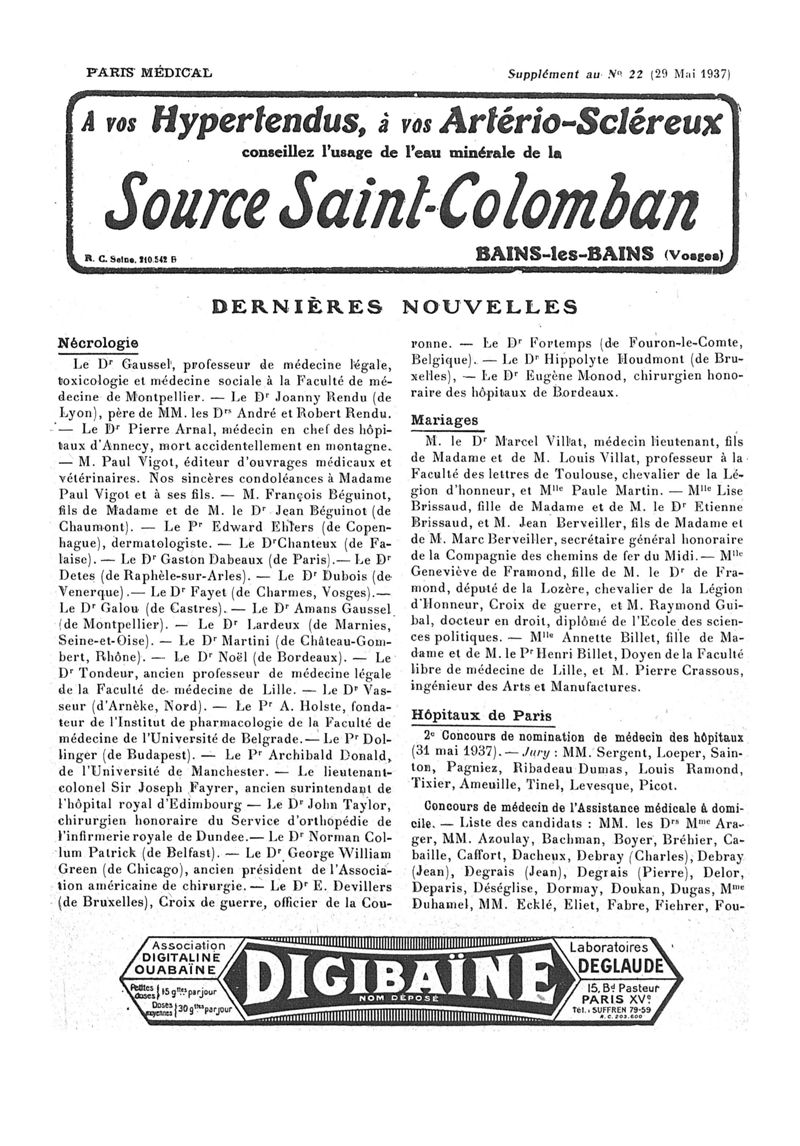 1937, n° 104, partie paramédicale. -