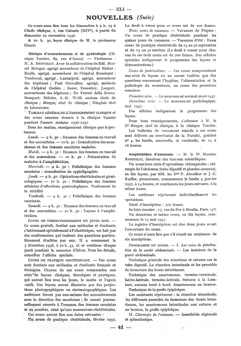 1937, n° 104, partie paramédicale. -