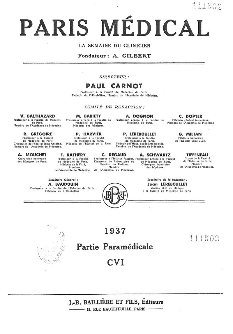 1937, n° 106, partie paramédicale. -