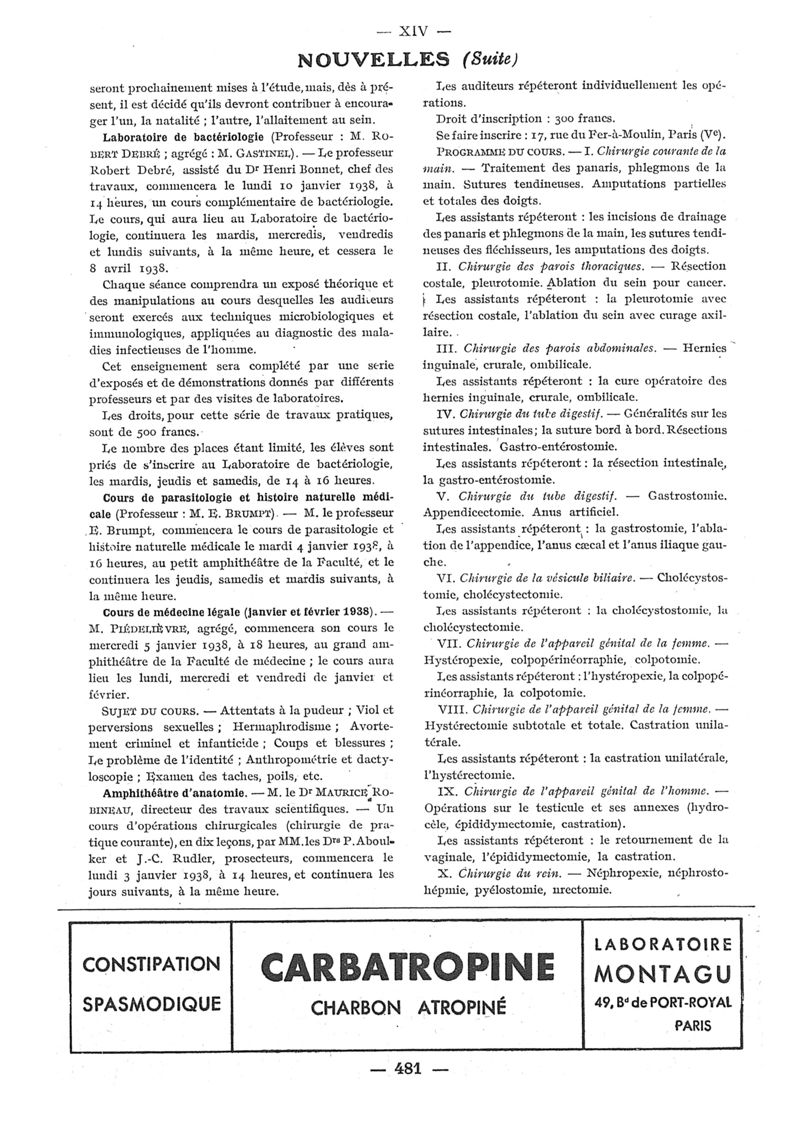 1937, n° 106, partie paramédicale. -