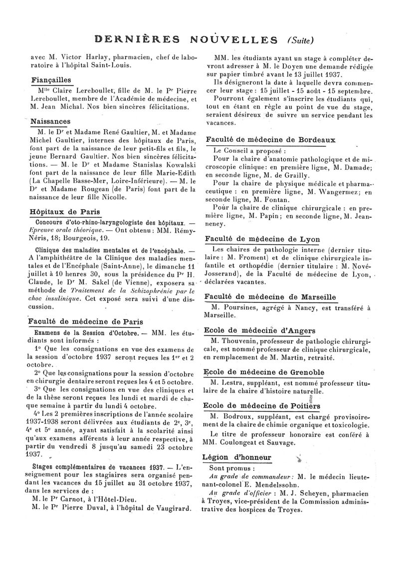 1937, n° 106, partie paramédicale. -