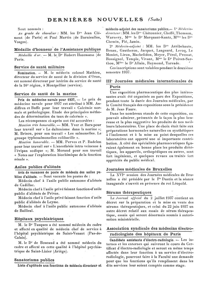 1937, n° 106, partie paramédicale. -