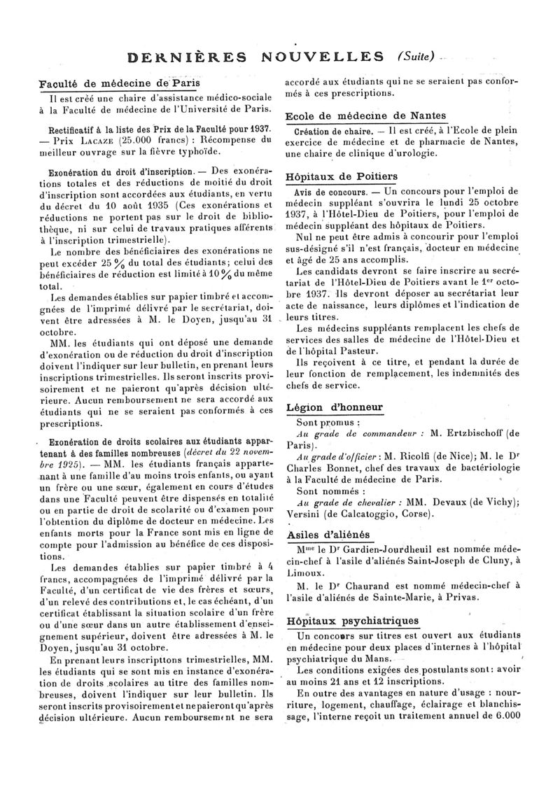 1937, n° 106, partie paramédicale. -