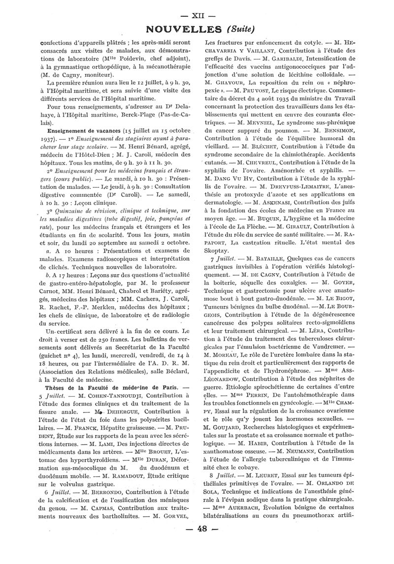 1937, n° 106, partie paramédicale. -