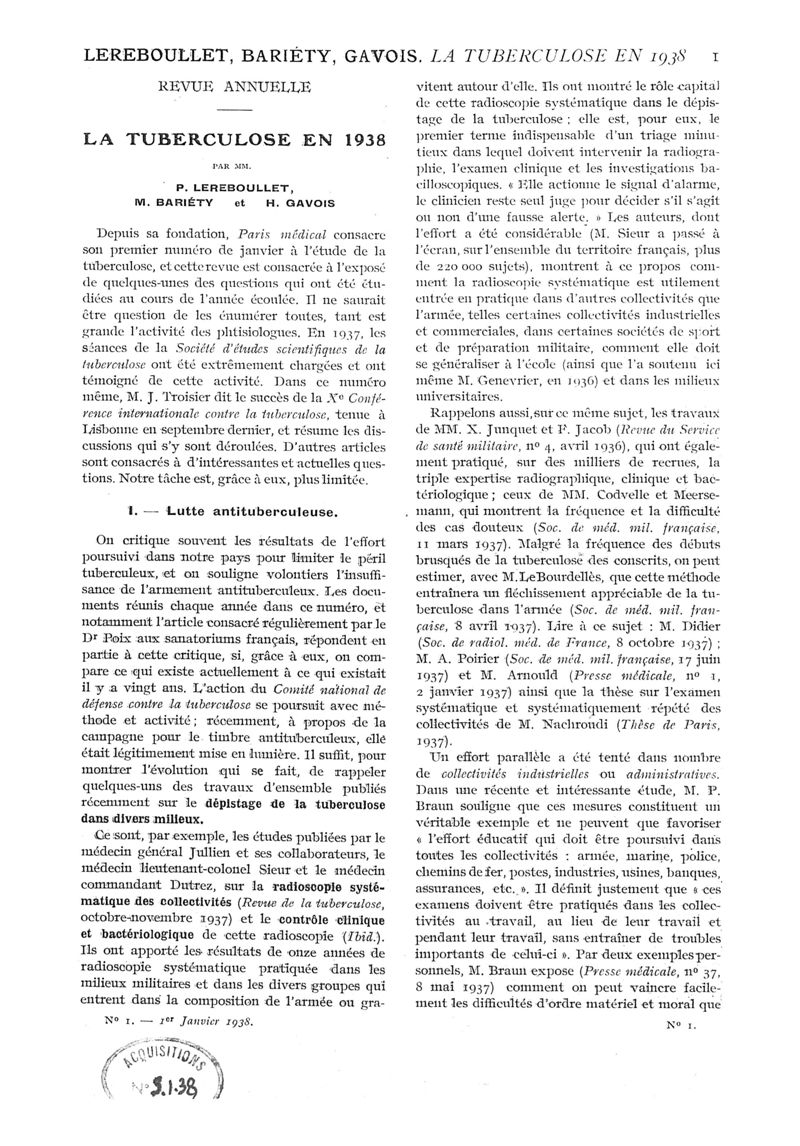 1938, n° 107, partie médicale. -
