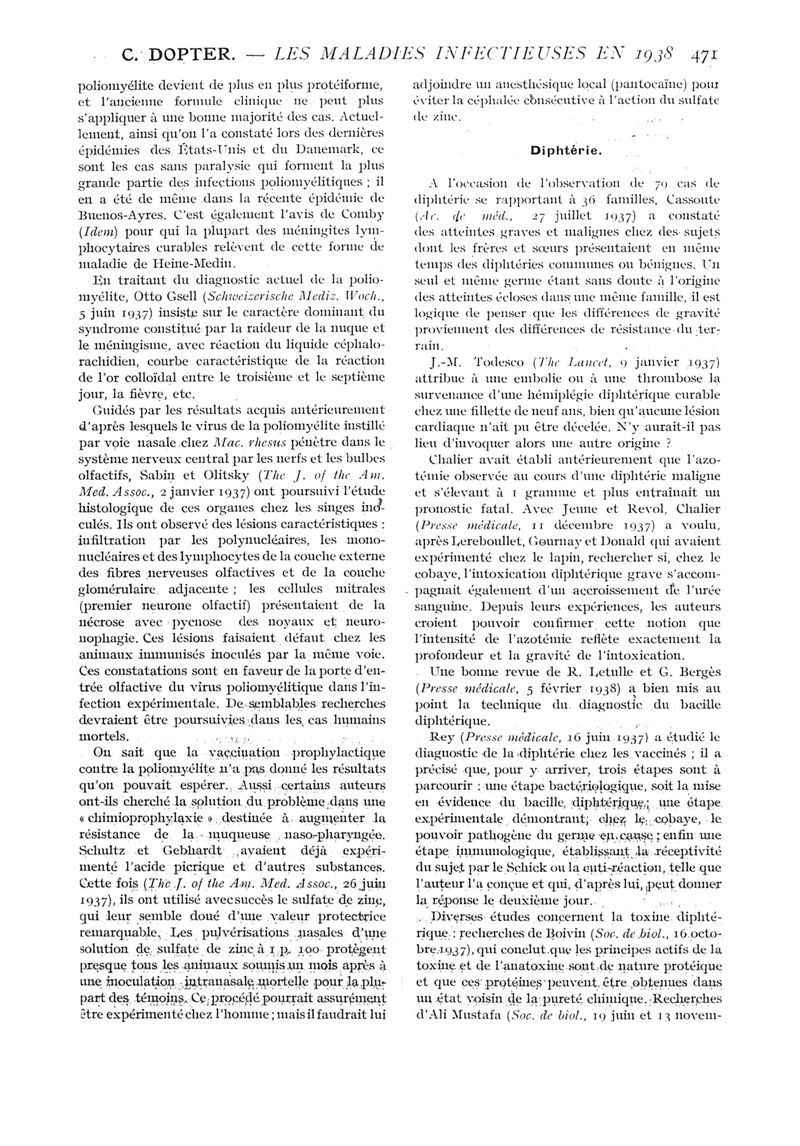 1938, n° 107, partie médicale. -