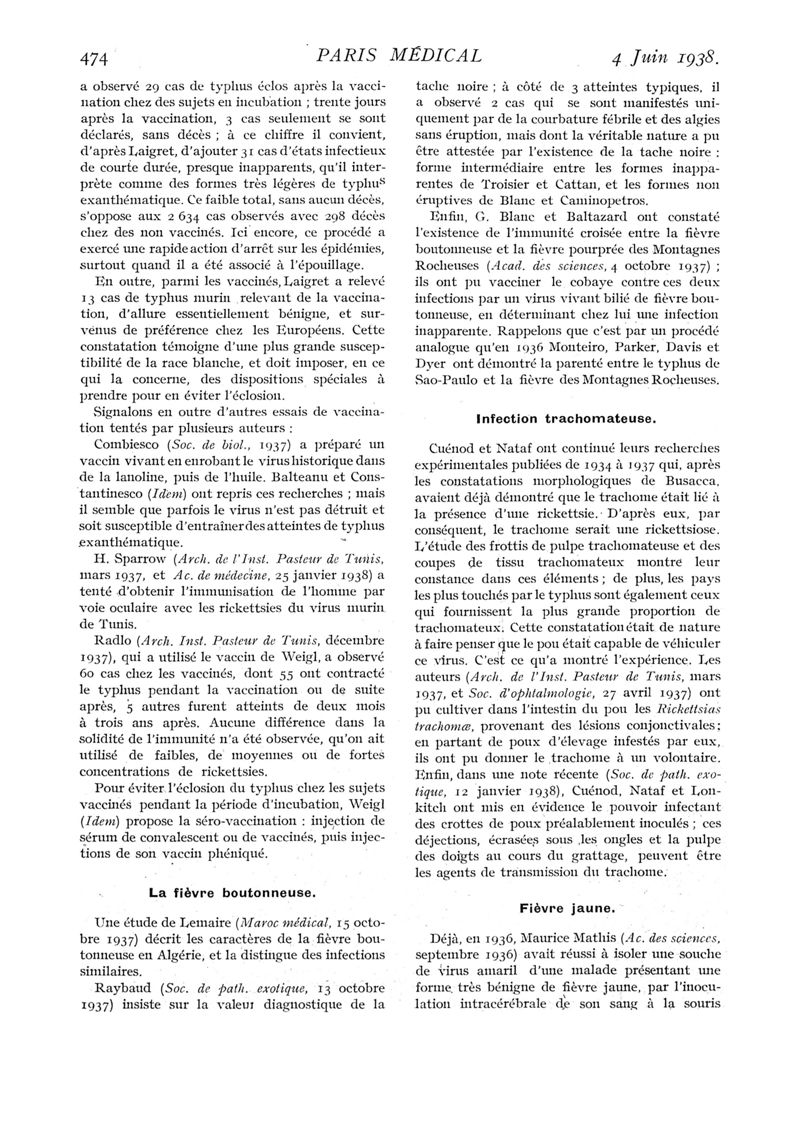 1938, n° 107, partie médicale. -