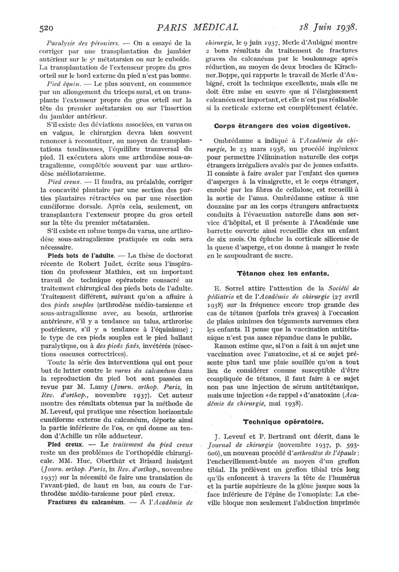 1938, n° 107, partie médicale. -