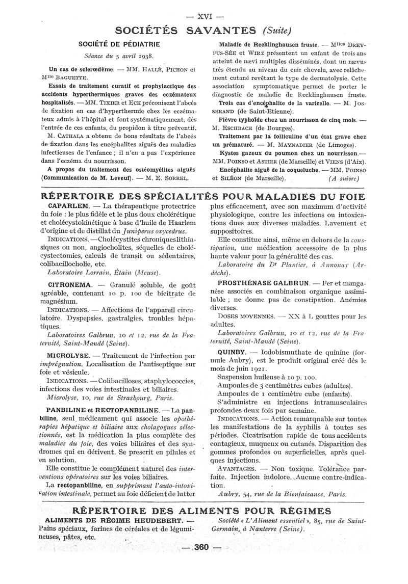 1938, n° 108, partie paramédicale. -