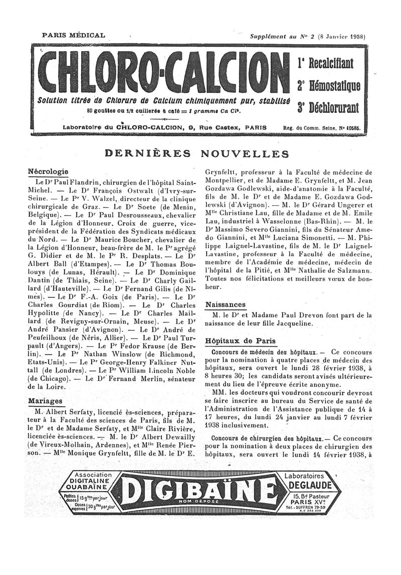 1938, n° 108, partie paramédicale. -