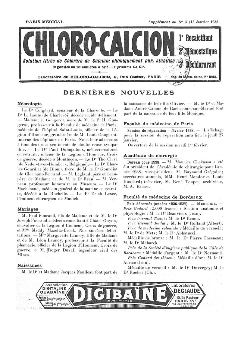 1938, n° 108, partie paramédicale. -