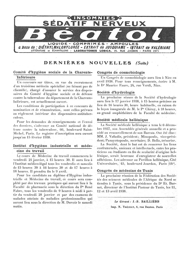1938, n° 108, partie paramédicale. -